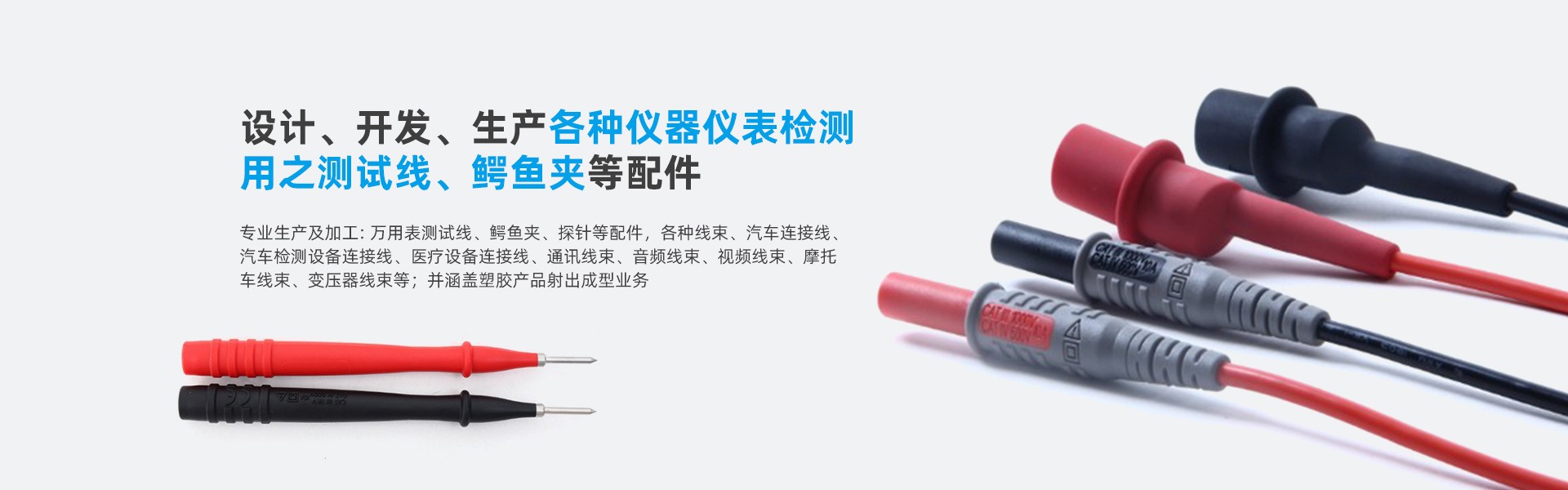 公司成立于2009年9月,主要生产及:万用表测试线、鳄鱼夹、试探探针等配件,各种线束、汽车连接线、汽车检测设备连接线、医疗设备连接线、通讯线束、音频线束、视频线束、摩托车线束、变压器线束等;塑胶产品射出成型等业务。